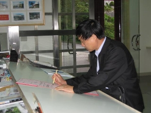 王江水副书记在参观薄上留言 王江水副书记赠送华梵大学纪念品