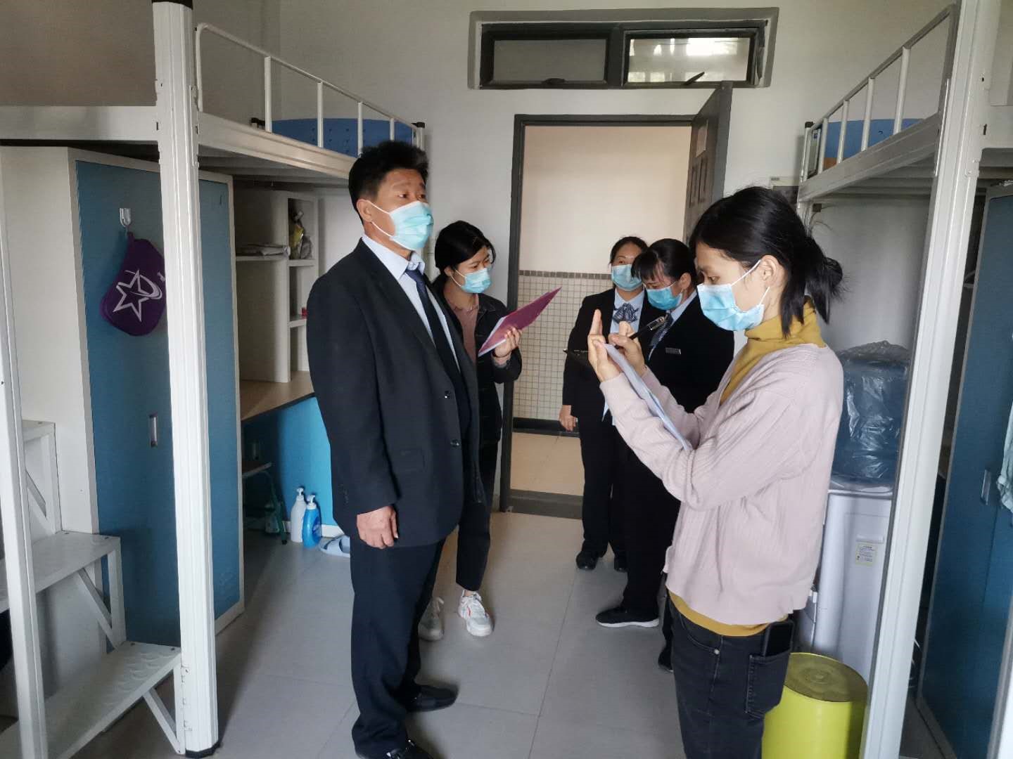 实地走访过程中,辅导员通过电话、微信视频、微信语音等多种形式让同学们参与“云检查”,甚至发起“直播”现场宿舍检查,以求同学们安心。