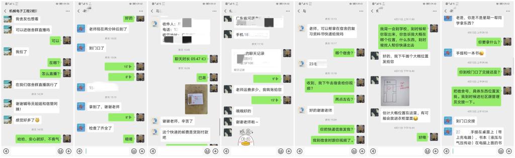 与此同时,辅导员黄楚刁走访留校同学,关心同学们在校生活和作息情况,了解学生近期动态。还帮助同学从社区取出学习所需电脑、考研复习资料、毕设所需书籍、就业所需证书等。有的选择在校门口交接,有的请求老师帮忙邮寄,确保不方便返校的同学能拿到学业所需的材料,保障学生顺利开展学业。