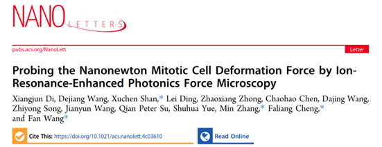 近期,我校程发良教授团队在生物探针技术取得研究进展,相关成果以“Probing the Nanonewton Mitotic Cell Deformation Force by Ion-Resonance-Enhanced Photonics Force Microscopy“为题发表在材料学领域TOP期刊《Nano Letters》,并被选为封面。该论文以九九精品视频一区在线久久久久久久久久毛片精品美女|国产99久久久久久免费看|中文精品99久久国产|国产69精品久久久久9999|精品久久久久久中文字幕无码|亚洲熟妇无码久久精品国产精品99|精品国产天堂综合一区在线为第一单位,博士后狄香君是该论文的第一作者,程发良教授和张敏教授为通讯作者。